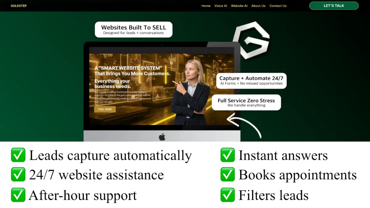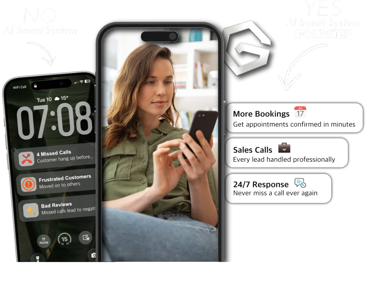 GOLDSTEP automates call handling, job booking, and lead routing around the clock.